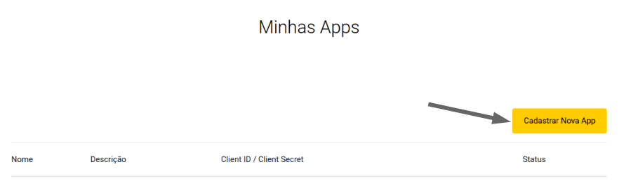 1. Acesse a página Minhas Apps e selecione Cadastrar Nova App